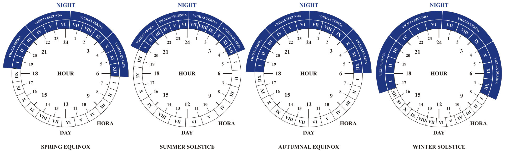 - Before you get too comfortable with the idea of these twenty four hours days, you should know that since they were measured with sundials, they only were equal hours on the equinoxes. The rest of the year, the length of the “hour” varied based on the season. Roman hours, for example, were more like this: